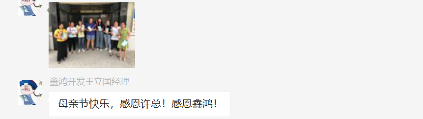 大家收到母親節禮物,都很開心,紛紛合影留念,并在公司微信群留言表達自己的歡喜之情,對公司的感恩之心。